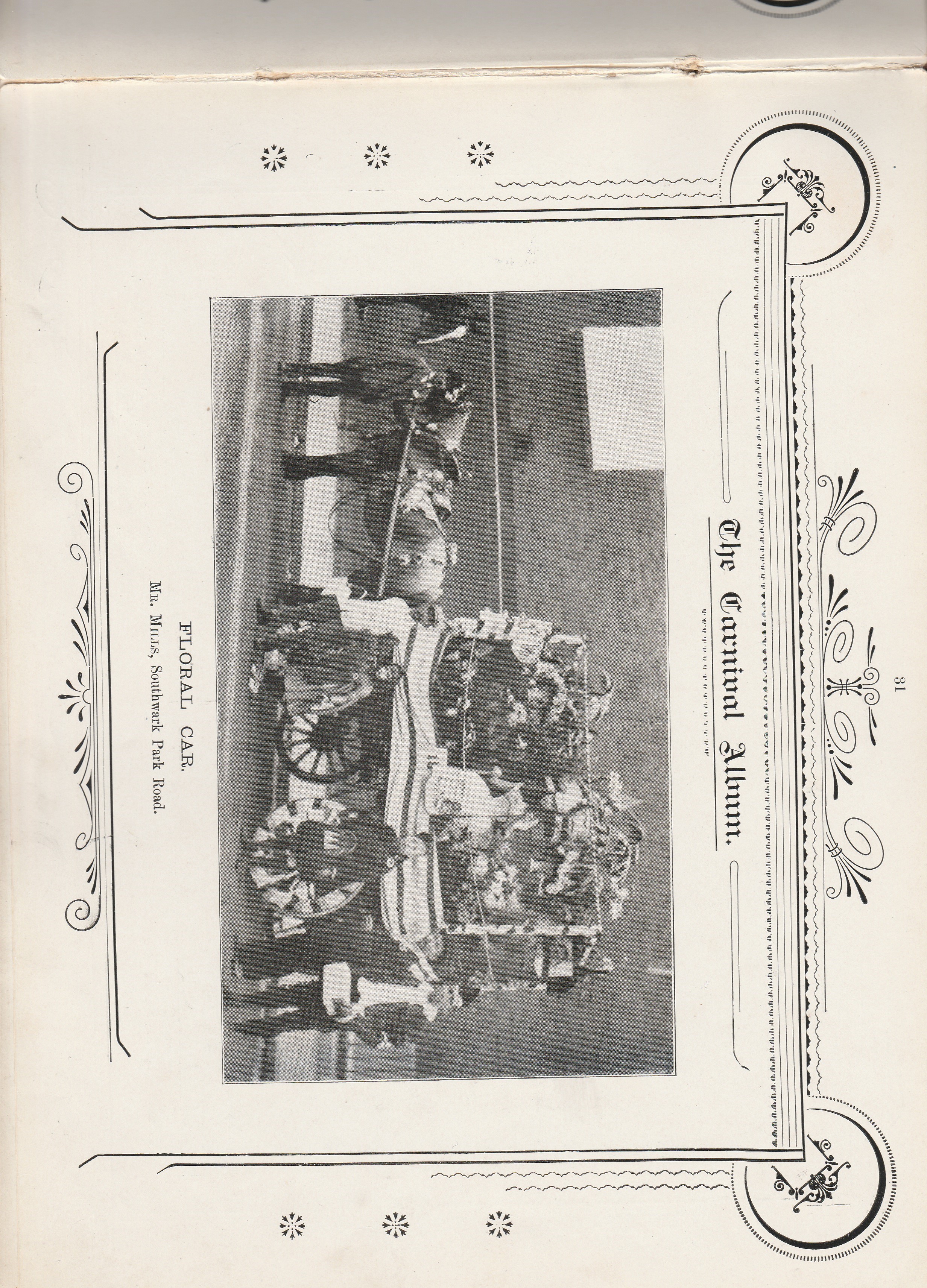 I have got a copy of the Carnival Album and yes there is a picture of a young man in a kilt on page 31. The heading is FLORAL CAR Mr Mills, Southwark Park Road.