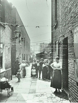 Children in a playground on the Peabody Estate off Broadwall. The estate was laid-out in 1875 and consisted of 16 blocks, with 4 additional blocks added in 1890s.